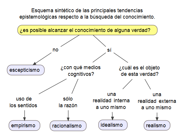 Esquema sintético de las principales tendencias epistemológicas respecto a la búsqueda del conocimiento.